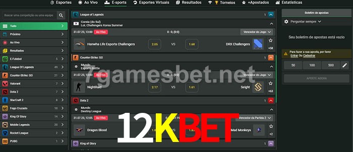 O 12Kbet oferece uma grande seleção de opções de apostas em e-sports com probabilidades competitivas